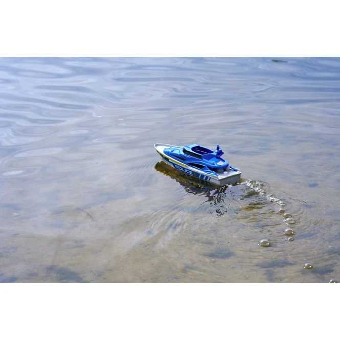 • Für Kinder ab 6 Jahren – Mit der handlichen Fernbedienung und einer Geschwindigkeit von max. 2 km/h lässt sich das RC Boot auch von kleinen Polizistinnen und Polizisten ab 6 Jahren problemlos steuern.